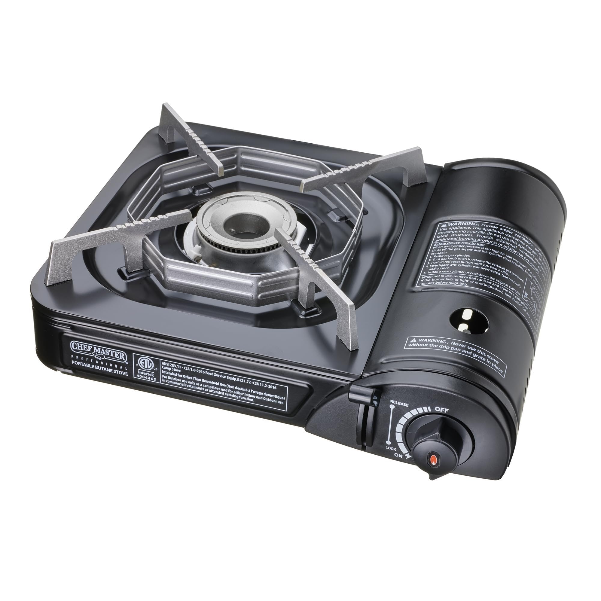 Chef Master Portable Butane Camping Stove, Piezo Ignition 7,650 BTU Output, Wind-Guard Portable Stove Burner with Portable Carrying Case for Emergencies, Road Trips, Hiking, Camping Essentials 90027PIEZO ELECTRIC IGNITION - The Chef Master 7,650 BTU Portable Camping Stove, a must-have among camping essentials, features a Piezo electric ignition. This makes the stove super easy to start and adjust the heat output. Ideal for outdoor cooking and backpacking adventures, this butane stove eliminates the need for a lighter as the burner ignites automatically, Whether you're on a hiking trip, road trips, car camping, or preparing for emergencies, this camp stove ensures efficient and convenient cEXTRA POWERFUL 7,650 BTU PORTABLE STOVE - The 90027 Butane Burner, a vital addition to your camping essentials, is designed to output up to 7,650 BTU. Ideal for solo stove adventures, indoor grilling, and outdoor cooking, this camping stove features a heat output that can easily be controlled by a dial next to the piezo electric ignition button that Fits up to a 10 inch pan. Perfect for backpacking trips, portable stove setups, and emergency stove needs.CAMPING AND BACKPACKING ESSENTIALS - The Chef Master 7,650 BTU Portable Butane Camping Stove is essential for any camping, road trips, or backpacking trip. This butane stove has a hard-shell carrying case which means that this unit is extra portable! The stove is small enough to easily fit in a hiking backpack or in a camping bag. Perfect for car camping essentials, solo stove adventures, and cooking with a camping cooking set.PACKED WITH SAFETY FEATURES - This Butane Stove is packed with many essential safety features. It comes with an In-Line Regulator with Pressure-Sensing Shut-Off, making it a safe choice for camping essentials, car camping, and road trips. If the pressure gets too high, the regulator will shut off the flow to prevent dangerous flashbacks. The Butane Burner, perfect for any portable stove or camp stove setup, has a wind-guard to protect the flame from breeze or A/C.BUTANE STOVE WITH PORTABLE CARRYING CASE - NOTE: This Purchase will on Include the Butane Camp Stove with a hard-shell carrying case to make the unit even more portable! It is easy to take this stove with you on every camping or hiking trip. Whether you need a reliable butane stove for your next camping essentials, camping stove, or backpacking stove, this portable butane stove fits the bill. It’s perfect for car camping essentials, camping cooking sets, and emergency stove needs.