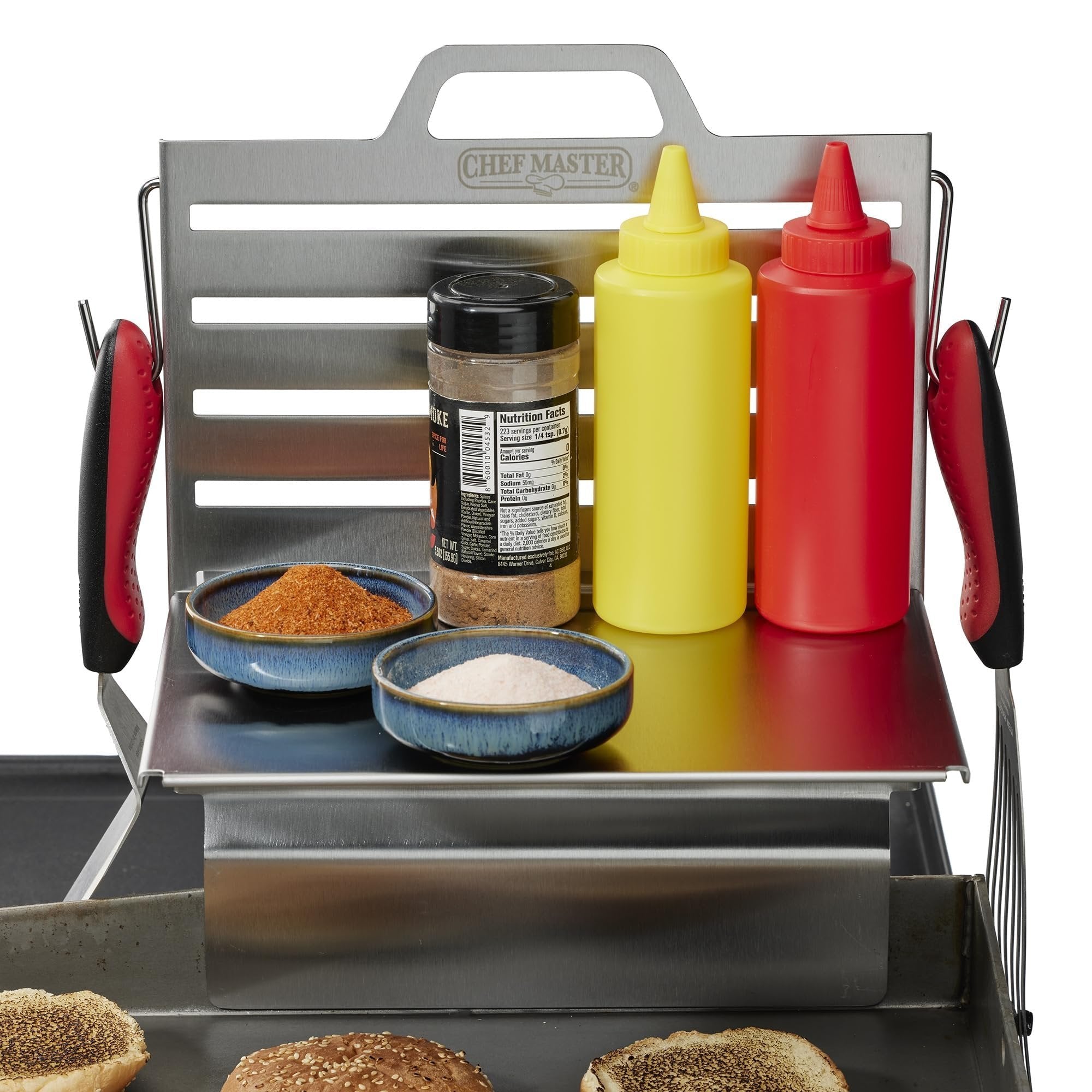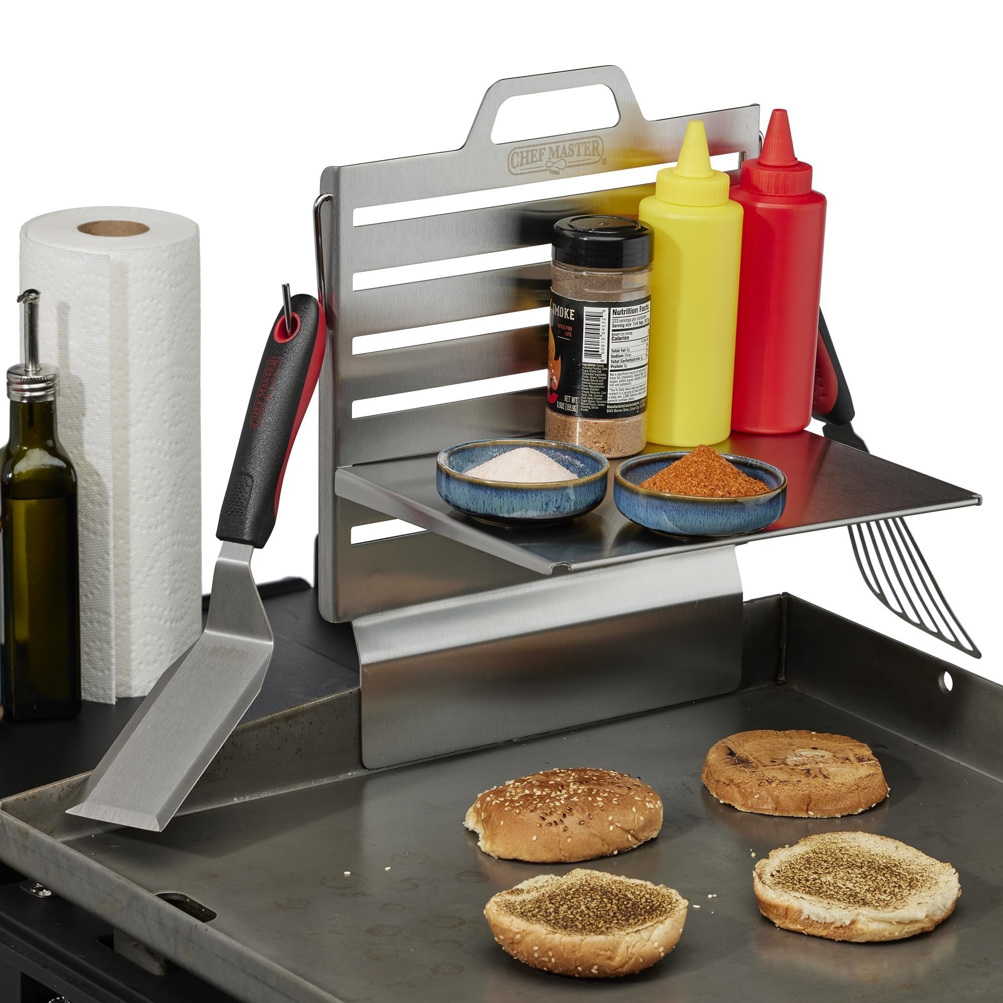 shelf, kitchen shelf, rack shelf, kitchen shelf organizer, kitchen shelf rack, stainless steel shelf, adjustable shelf, steel shelf, stainless shelf, blackstone shelf, paper towel rack with shelf, blackstone original inch front shelf, side shelf, magnetic grill shelf, shelf, bumper shelf, blackstone side shelf, shelf with, caddy organizer, grill caddy, kitchen caddy, griddle caddy, bbq caddy, grill caddy for outdoor grill, blackstone griddle caddy, blackstone accessories caddy, blackstone caddy, blackstone grill caddy, blackstone cook and carry griddle caddy, blackstone caddy for griddle, magnetic grill caddy, griddle caddy for blackstone griddles prep cart, magnetic caddy, black caddy, grilling caddy, kitchen caddy organizer, bbq caddy with paper towel holder, bbq caddy for outdoor grill, paper caddy organizer, towel caddy outdoor, bbq caddy organizer, blackstone caddy organizer, bbq grill caddy, outdoor caddy, grill caddy bag, grill caddy for outdoor grill blackstone, black caddy organizer, camping caddy for plates and utensils and paper towels, grill caddy with wheels, grill caddy organizer, outdoor caddy organizer for tabletop, outdoor cooking caddy, grill caddy with paper towel holder, steel caddyESSENTIAL BBQ GRILL ACCESSORY - Upgrade your grilling setup with this must-have griddle side shelf, designed for convenience, durability, and efficiency. Perfect for holding BBQ tools, sauces, and seasonings, it assembles in minutes and disassembles just as easily for compact storage and portability. Crafted from premium stainless steel with a sleek frosted finish, it offers superior rust resistance, enhanced grip, and long-lasting performance in any outdoor setting. Reinforced spot welding ensuMAXIMIZE YOUR GRILL SPACE - Enhance your outdoor cooking experience with our 16.5" x 11.5" x 1.5" Griddle Utensil Side Shelf Caddy, designed for quick access to all your essential grilling tools and accessories. Built for durability and convenience, this sturdy shelf creates extra workspace while keeping everything neatly organized and within reach. Its compact design seamlessly integrates into your setup, making it the perfect companion for any griddle. Featuring integrated hooks and a built-inULTIMATE SIDE SHELF FOR COMMERCIAL GRILLING - Upgrade your griddle station with our Commercial Griddle Side Shelf, designed for effortless integration on either the left or right side to match your cooking style. Perfect for keeping condiments, utensils, and essential tools organized and within arm’s reach, it eliminates the hassle of searching for items mid-cook. Built for convenience and efficiency, this durable shelf ensures a seamless grilling experience, allowing you to focus on cooking delDURABLE & RELIABLE GRILL ORGANIZER - Keep your grilling essentials neatly arranged with this sturdy kitchen caddy and utensil organizer, built to support spice bottles, plates, and cooking tools with ease. Rigorously tested for durability, it ensures everything stays within reach, so you can focus on grilling without interruptions. Designed for stability and convenience, this dependable shelf keeps your tools, condiments, and dishes securely in place, making every barbecue session more efficientPREMIUM STAINLESS STEEL AND DISHWASHER SAFE - Elevate your grilling experience with this high-quality stainless steel kitchen tool, built for durability and performance. Designed for barbecue enthusiasts, it offers a sleek, modern look while withstanding heavy use. Its dishwasher-safe design ensures effortless cleanup, making post-grill maintenance quick and easy. Whether you're flipping burgers, searing steaks, or handling delicate foods, this versatile tool delivers precision and reliability.