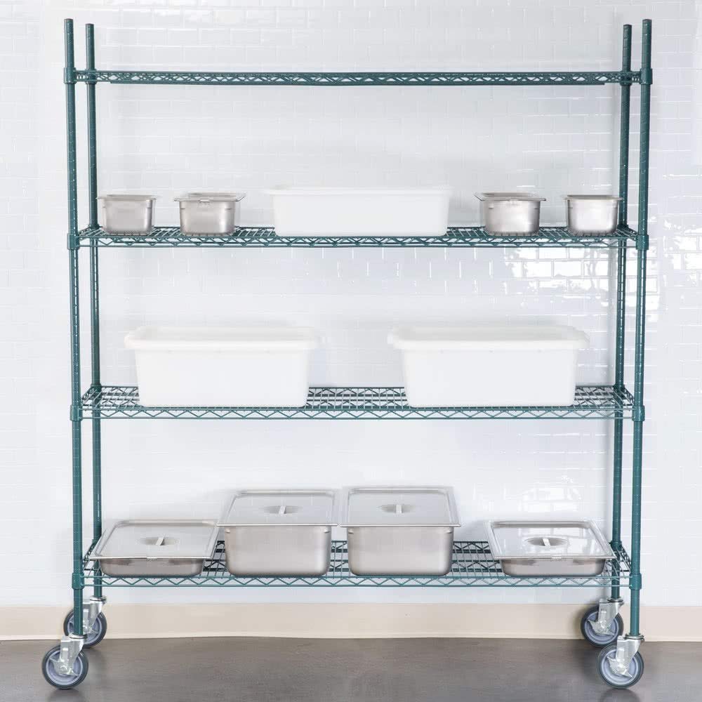 Epoxy Coated Heavy duty wire construction NSF Certified Price listed is for a box of 2 shelves Shelves under 48" in length can hold up to 850 lbs per shelf Shelves over 48" in length can hold up to 600 lbs per shelf Comes with black plastic clipsCommercial-Grade Construction This shelf features a metal wire construction for unmatched durability and a durable epoxy coating for protection from rust and corrosion. As a result, it's safe to use in your warewashing area and walk-in freezer or refrigerator.High Weight Capacity Thanks to its material makeup, this shelf also has a high weight capacity of 450 lbs. The high weight capacity helps the shelf accommodate business growth as storage needs evolve and product inventory expands.