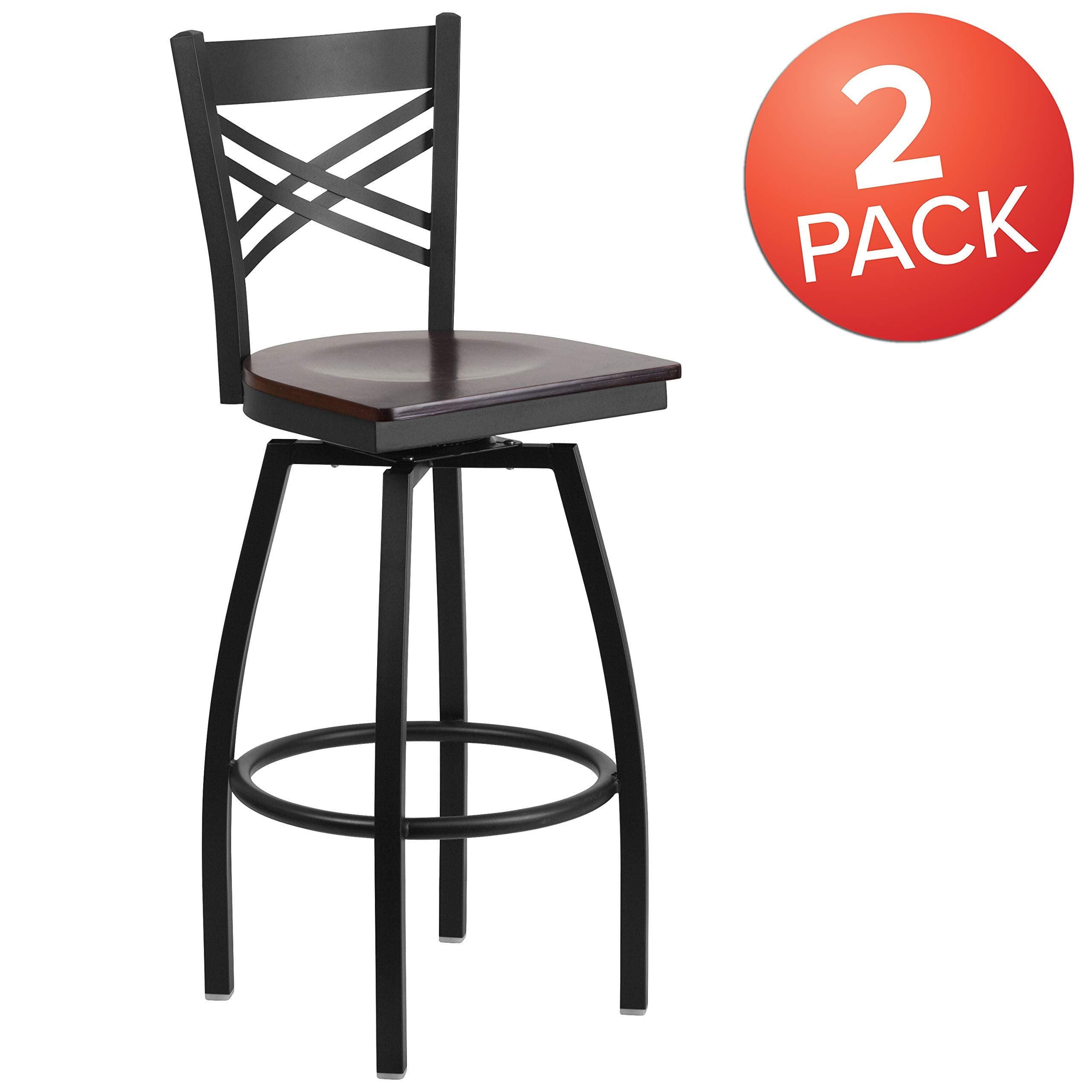Flash Furniture 2 Pk. HERCULES Series Black ''X'' Back Swivel Metal Barstool - Walnut Wood Seat Pack of 2: If... Read more