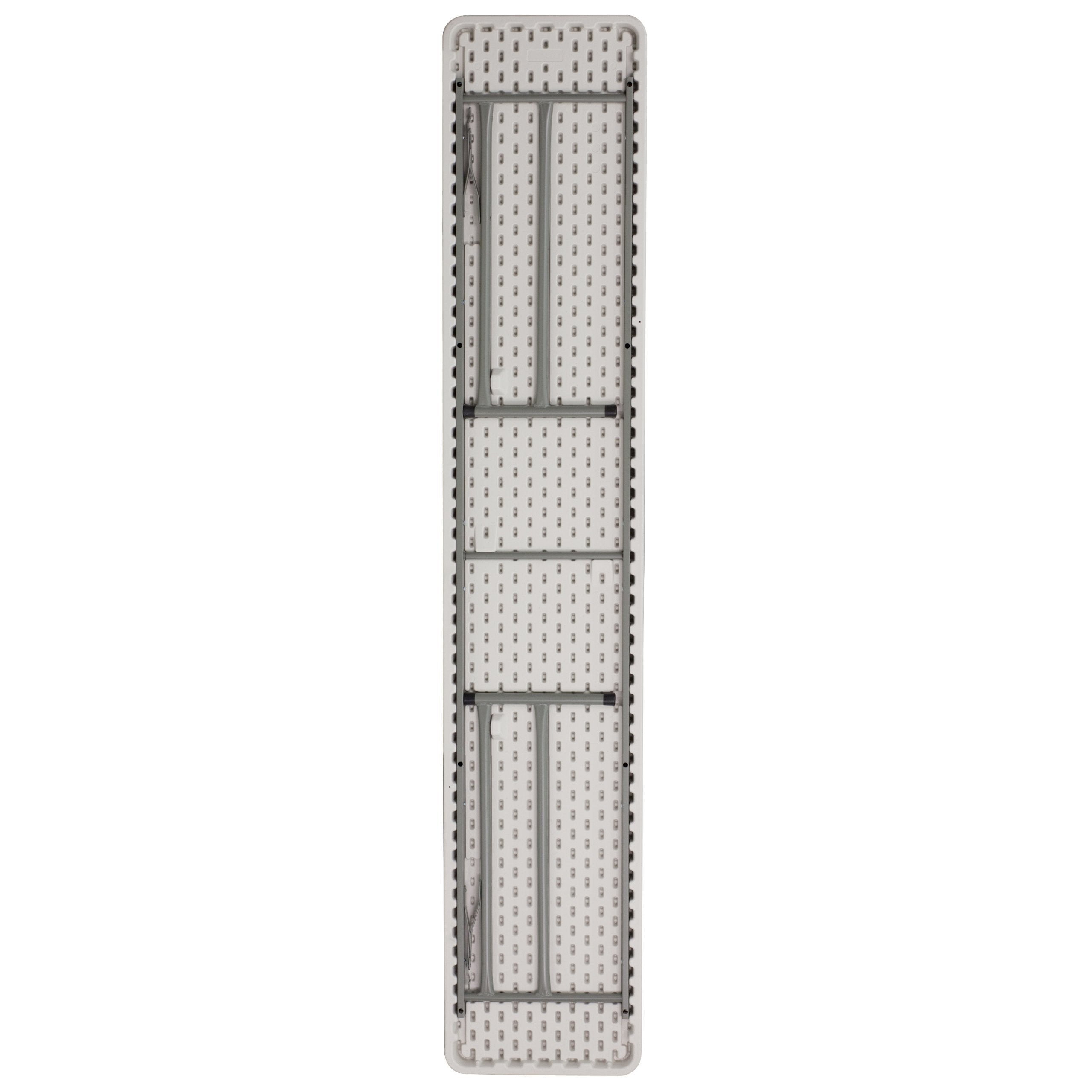 Flash Furniture 8' Plastic Folding Training and Event Table, Rectangular Folding Training Table with 330-lb. Static Weight Capacity, White8' RECTANGULAR TRAINING TABLE: Provides functional space for training rooms or classrooms and comfortably seats up to 4 adults on one side while allowing each person a clear view of the board and instructorVERSATILE USES: Set up your products at convention centers, host a sip and paint party with friends, or use it to hand out travel brochures, information pamphlets, or test packets for students or traineesDURABLE CONSTRUCTION: 1.75" waterproof plastic tabletop and powder-coated locking legs withstand years of quality use in indoor or outdoor settings and can support up to 330 lbs. of static weightFOLDABLE LEG DESIGN: Allows for easy transportation and compact storage, and the legs feature non-marring floor caps on the bottom that prevent your flooring surfaces from being damaged when moving the tableNO ASSEMBLY REQUIRED: Measures 18"W x 96"D x 29"H for the perfect size to accommodate all your information papers, supplies, food and drinks, and more, and no assembly is required