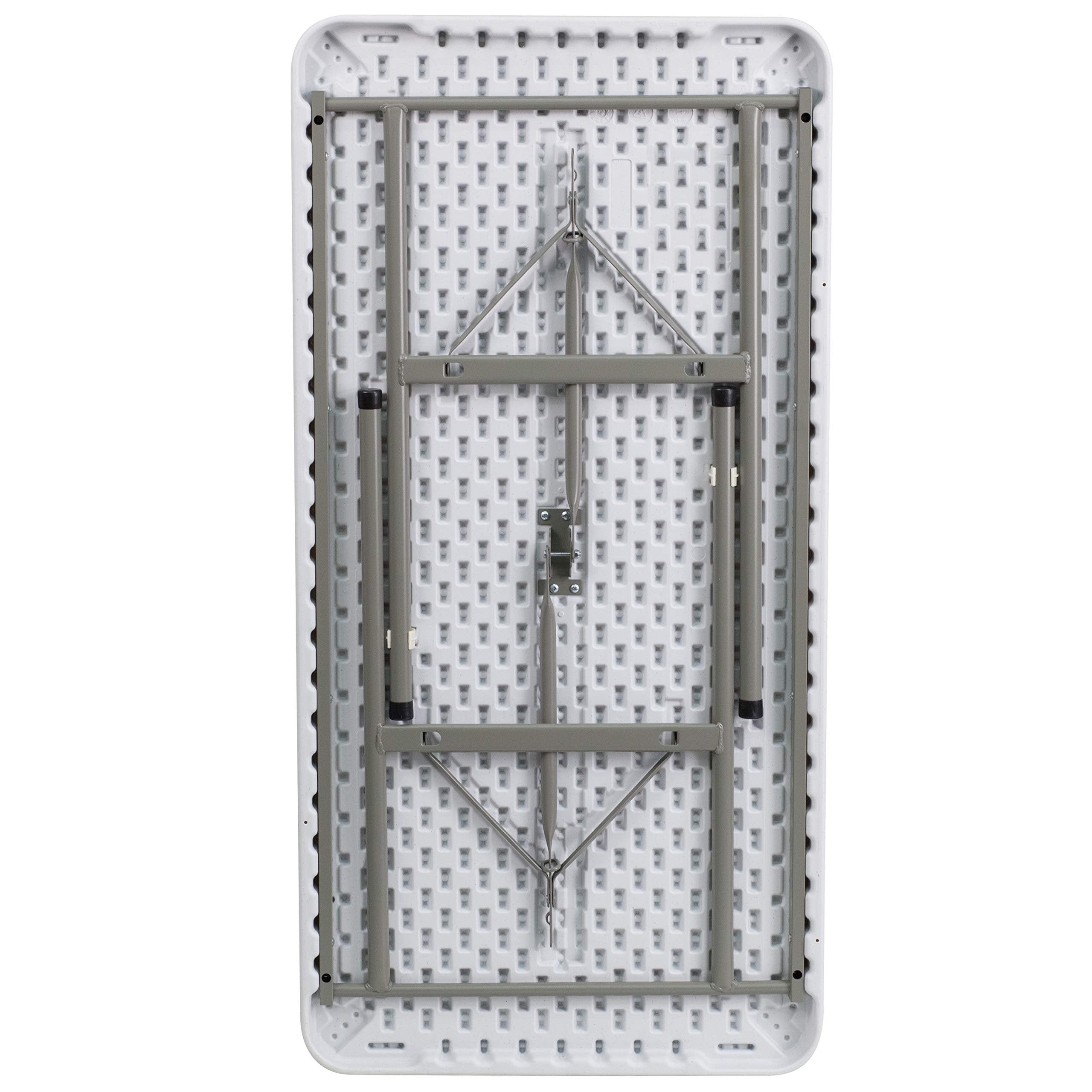 Flash Furniture Elon 4' Rectangular All-Occasion Plastic Folding Event Table, Foldable Portable Banquet Table for Indoor/Outdoor Events, White4' RECTANGULAR FOLDING EVENT TABLE: Offers a reliable, on-demand solution for when you need a little extra surface space for your guests at indoor or outdoor home, school, or business eventsVERSATILE USES: Comfortably seats up to 4 people, making it great for a variety of settings such as parties, conferences, barbecues, trade shows, corporate events, training rooms, banquet venues, and much morePORTABLE DESIGN: Foldable table with locking legs allows for easy transportation and compact storage, and the floor caps protect your flooring surfacesHIGH-QUALITY CONSTRUCTION: Made with a 1.75" thick waterproof and impact and stain-resistant tabletop and durable gray powder-coated locking legs to withstand years of quality use at indoor and outdoor eventsNO ASSEMBLY REQUIRED: Supports up to 330 lbs. of static weight and measures 24"W x 48.25"D x 29"H with no assembly required, so you can start setting up for events right away