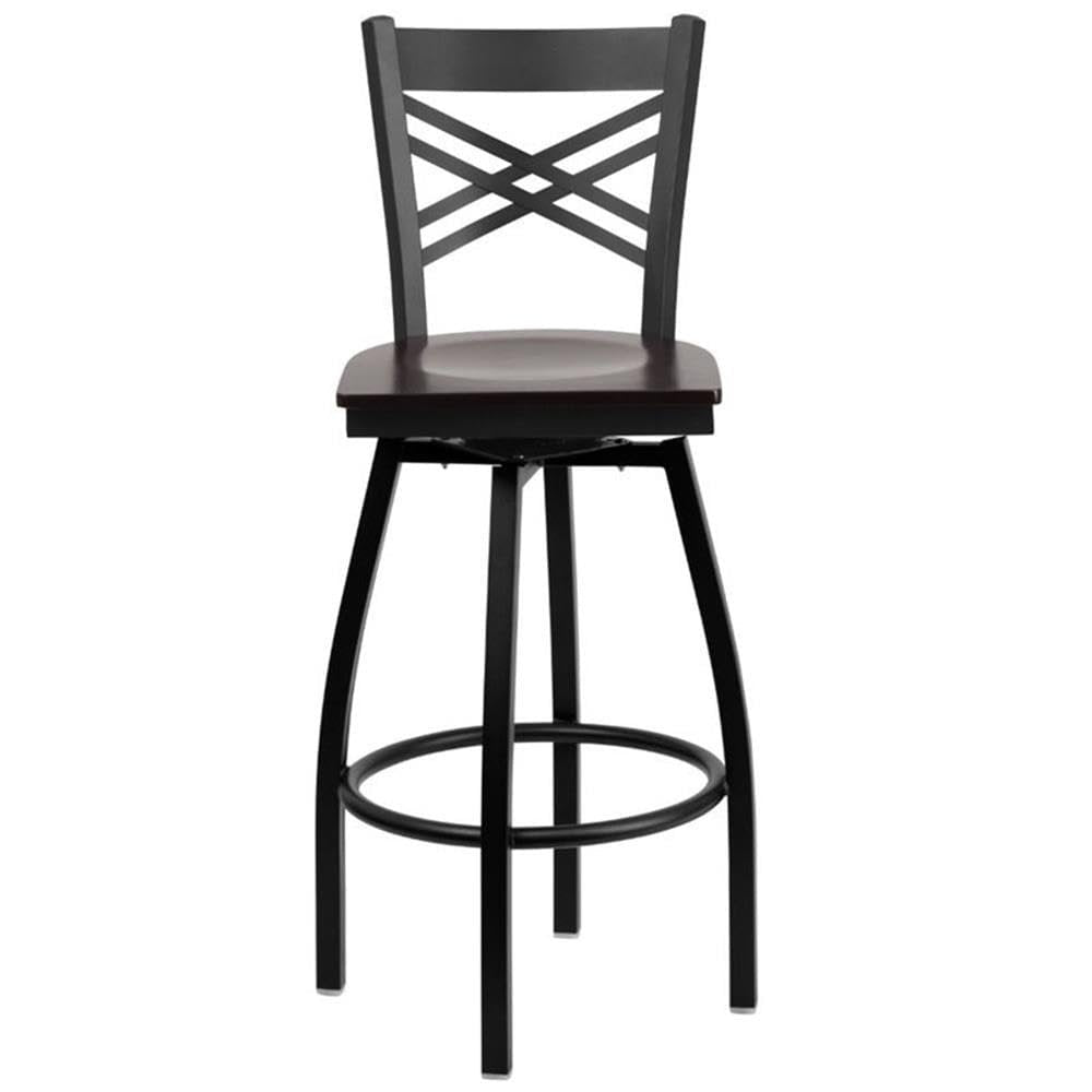 Flash Furniture HERCULES Series Black ''X'' Back Swivel Metal Barstool - Walnut Wood SeatIf you want repeat business from your restaurant, bar or café patrons then great seating is a must. This "X" back metal swivel bar stool is great for commercial spaces but also provides a chic, stylish look for your kitchen or dining roomIf you want repeat business from your restaurant, bar or café patrons then great seating is a must. This "X" back metal swivel bar stool is great for commercial spaces but also provides a chic, stylish look for your kitchen or dining roomIf you want repeat business from your restaurant, bar or café patrons then great seating is a must. This "X" back metal swivel bar stool is great for commercial spaces but also provides a chic, stylish look for your kitchen or dining roomIf you want repeat business from your restaurant, bar or café patrons then great seating is a must. This "X" back metal swivel bar stool is great for commercial spaces but also provides a chic, stylish look for your kitchen or dining roomIf you want repeat business from your restaurant, bar or café patrons then great seating is a must. This "X" back metal swivel bar stool is great for commercial spaces but also provides a chic, stylish look for your kitchen or dining room
