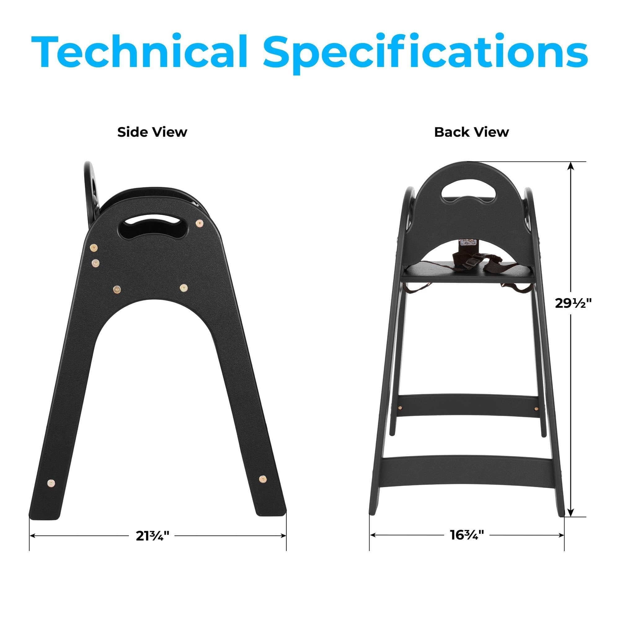 Koala Kare Designer High Black, AssembledSleek, Modern Design: The KoalaKare Designer High Chair offers a stylish and contemporary look, perfectly matching modern restaurant design and décor. Its curved design prevents unsafe usage, making it both a visually appealing and secure option for family dining environments.Durable & Sanitary Construction: Made from seamless, solid HDPE plastic, this high chair is more durable and sanitary than traditional wood high chairs. Its textured surface resists scuffing, chipping, and scratching, ensuring it maintains its sleek appearance even in high-traffic dining areas.Hygienic, Easy-to-Clean Surface: Designed with no crevices or seams, the KoalaKare Designer High Chair prevents food from collecting, making it incredibly easy to clean. This ensures a high level of hygiene, keeping your restaurant environment safe and family-friendly.Space-Saving & Stackable: Featuring a small footprint, this high chair fits neatly into dining areas without taking up valuable space. It’s also stackable, allowing you to store multiple chairs compactly when not in use, making it an ideal choice for busy restaurants with limited storage.Table-Height Design: The KoalaKare Designer High Chair is designed at table height, allowing children to dine comfortably with their families at standard restaurant tables. This feature enhances the overall dining experience for families and encourages longer visits to your establishment.