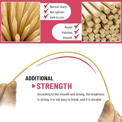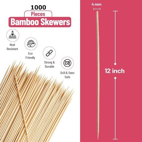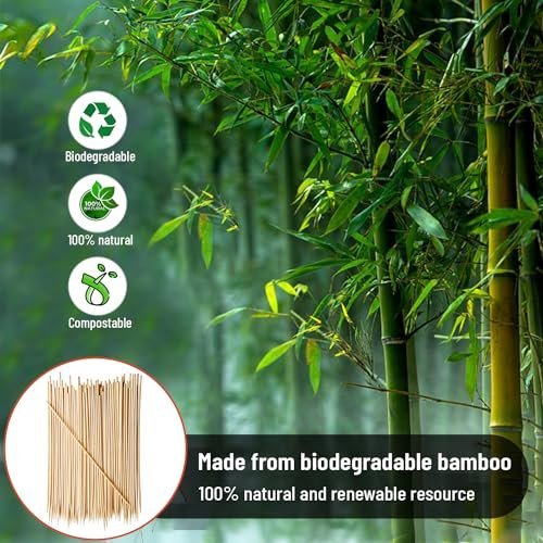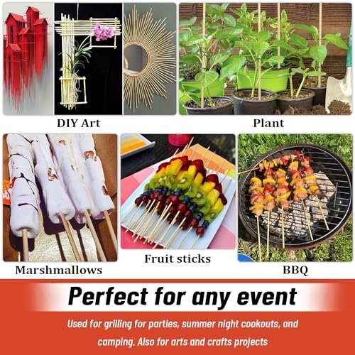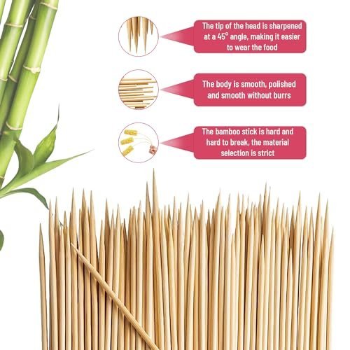 These natural bamboo skewers are perfect for a variety of uses, including BBQ, shish kabob, appetizer, fruit, cocktail, chocolate fountain, grilling, barbecue, kitchen, crafting, and party. They are eco-friendly, non-toxic, and reusable, making them a great alternative to plastic or metal skewers. The skewers are made of high-quality bamboo, which is a natural and sustainable resource. They are durable and sturdy, yet lightweight, making them easy to handle and use. The skewers are perfect for a variety of food items, including vegetables, fruits, meat, and seafood. They are also great for use with a chocolate fountain, allowing you to create beautiful and delicious desserts. The skewers are easy to clean and store, and can be reused multiple times. Whether you are hosting a party, BBQ, or just enjoying a meal with family and friends, these natural bamboo wooden skewers are a must-have accessory.NATURAL BAMBOO: Our bamboo skewers are made of 100% natural moso bamboo, which is a highly sustainable resource. Bamboo is a fast-growing crop that requires minimal water and no pesticides or fertilizers to grow, making it an environmentally friendly choice.DURABLE AND STRONG: These skewers are thick and sturdy, making them perfect for holding a variety of food items. They are durable enough to withstand the heat of the grill or barbecue without breaking or bending.EASY TO USE: Our bamboo skewers are easy to use and clean. They have a smooth surface that makes it easy to slide food onto the skewer, and they are also dishwasher safe for convenience.VERSATILE: These skewers are versatile and can be used for a variety of food items, including vegetables, fruits, meat, seafood, and cheese. They can be used for shish kabob, kebabs, satay, or even used as a garnish for cocktails or desserts.PERFECT FOR PARTIES: Our bamboo skewers are perfect for parties, weddings, and other special occasions. They add a natural and elegant touch to any table setting and can be used to display a variety of food items.