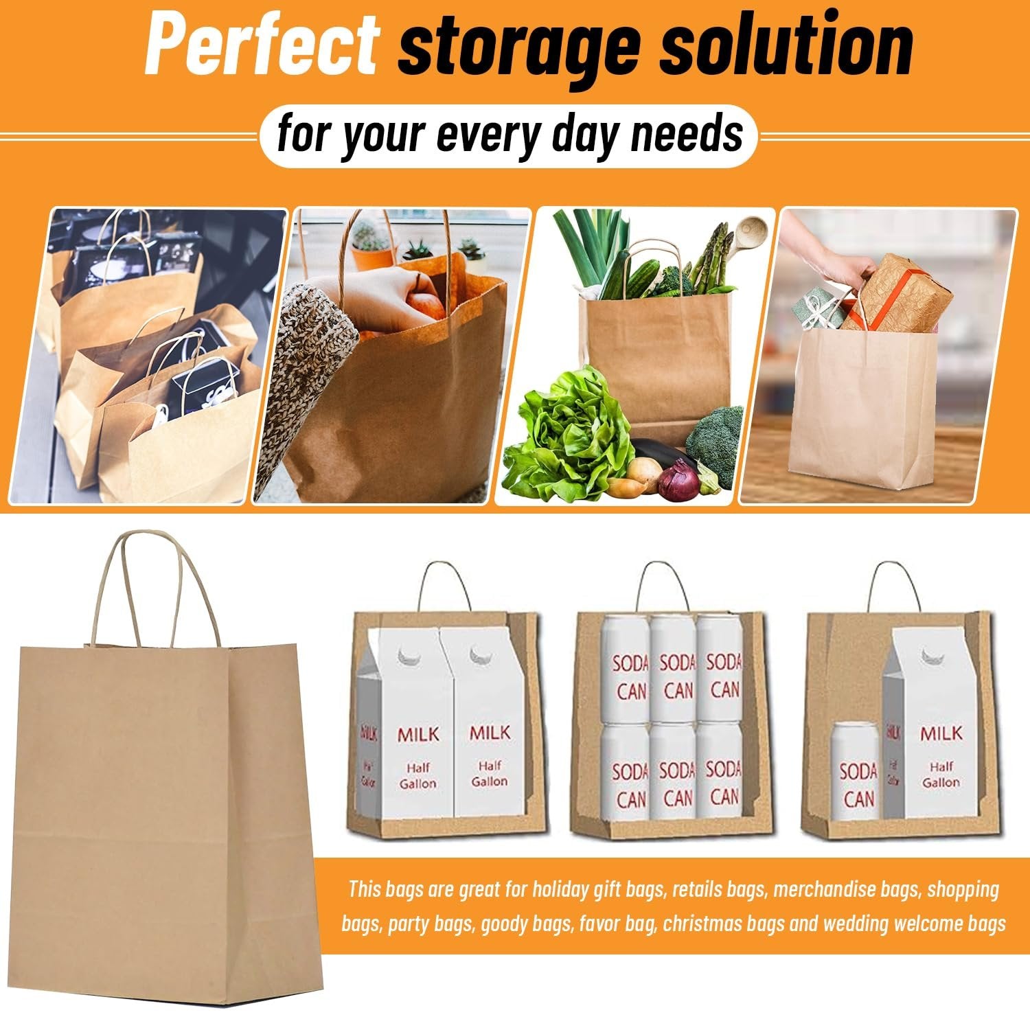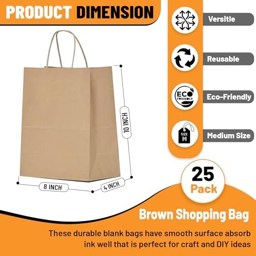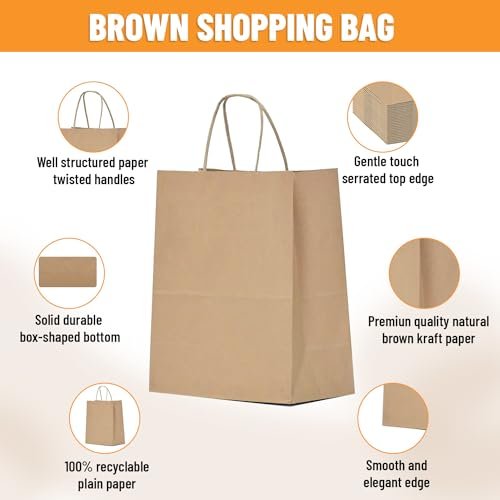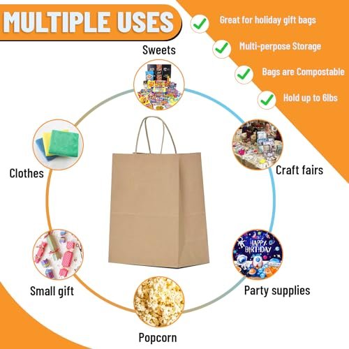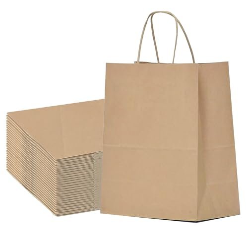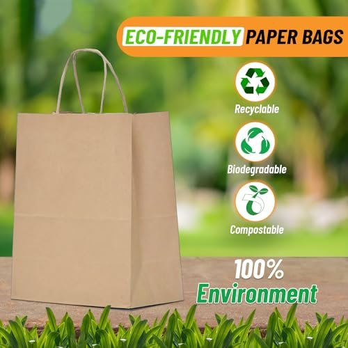 These brown paper gift bags with handles are perfect for retail store packaging, party favors, goody bags and gift giving. These kraft paper bags are made of durable paper material, with strong rope handles, flat bottom, and reinforced cut corners for extra durability. The natural brown color adds a rustic feel to any party or event. These small paper bags are perfect for small gifts, party favors, cookies, candy, snacks, and other retail items.Size: 9 x 6 x 3 inches | 250 pcs brown kraft bags | Brown handle paper bags | Kraft paper bags with handlesMaterial: high quality durable kraft paper | Thick handle paper bags | Eco-friendly and sturdyUses: Great for party favors, gift giving, retail shopping and product packaging | Perfect for birthday parties, baby showers, weddings, anniversaries, engagement parties, bachelorette parties, bridal showers, graduation parties, holiday celebrations and so on | Our small paper bags with handles are perfect for any occasionOccasions: Perfect for various occasions, such as weddings, birthdays, baby showers, holiday parties, and more, to add a touch of elegance and rusticity to your events | These kraft bags can hold various items, such as candies, cookies, snacks, chocolates, soaps, candles, gifts, accessories, stationery, and more | Enhance the overall appeal of your party or event with these charming bags