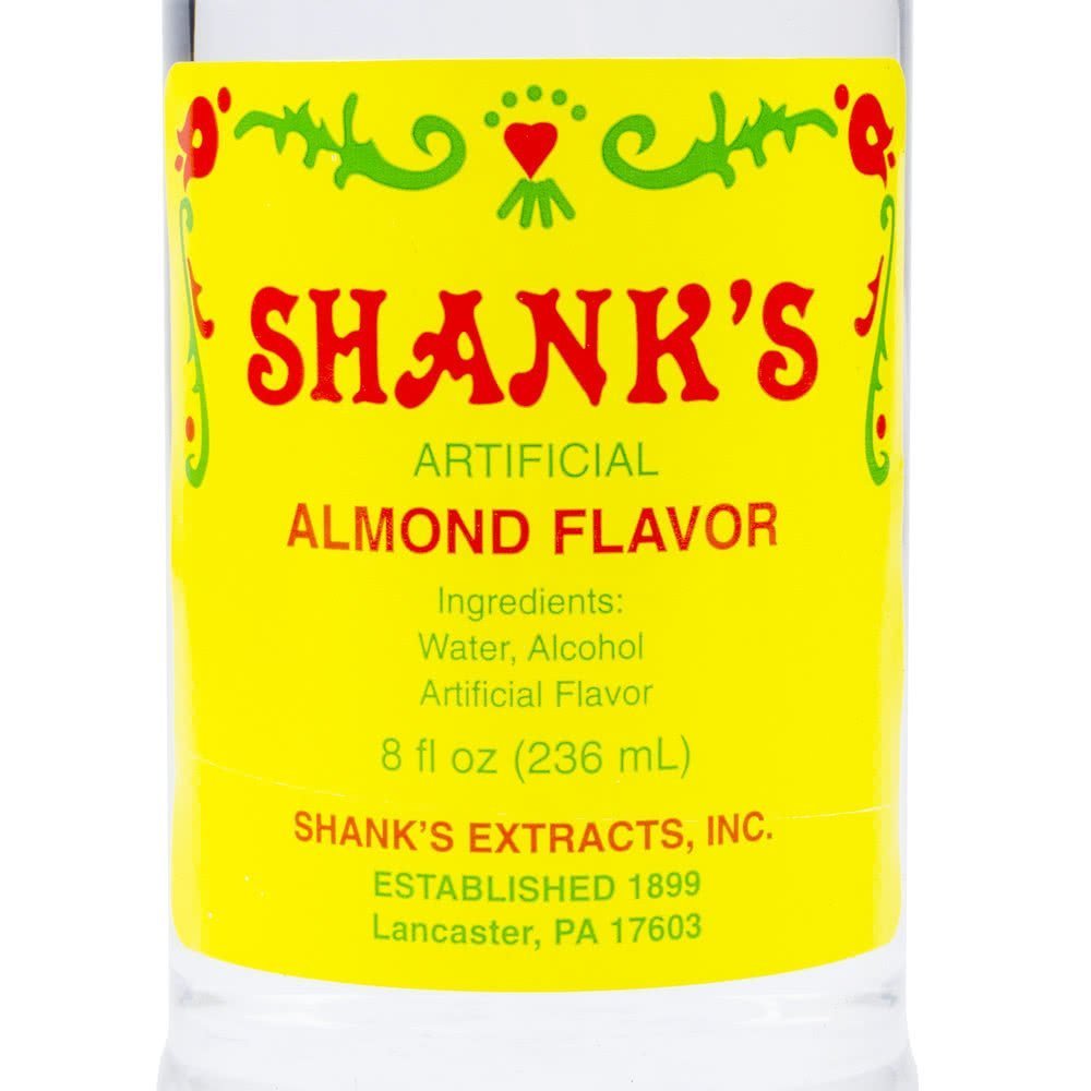 Add nutty almond flavor to your cakes, cookies, and pastries using Shank's 8 oz. imitation almond. It's also great for making sauces, frostings, and flavored drinks! Mixing almond flavor into your baked treats is simple and quick. Start with plain white cake mix or plain white frosting, and add a splash of this imitation almond flavoring into the batter. You can even pair this flavoring with any shade of food coloring to add both color and flavor to your cake batter and sweet icings! Besides baking applications, the popular, nutty flavor of almonds tastes great with many stovetop recipes or other sweet and savory dishes. Try using a dash of almond flavor with alcoholic or non-alcoholic drinks, smoothies, coffees, puddings, chocolates, or other confectioneries. This imitation almond extract is gluten free, so it can be used to create mouthwatering gluten free baked goods and other flavorful menu items that all of your guests can enjoy. The roots of Shank's Extracts, Inc. date back to 1899 when Jacob Shank created flavorings to help make medicines taste better. Expanding their company and label through the years, Shank's flavors, extracts, and food colorings are now sold to industrial and grocery customers across the country. Headquartered in Pennsylvania, Shank's modern manufacturing and packaging facility produces a variety of fine flavors for cooking, baking, and confectionery applications. Enhance the flavor of any dish when you use this imitation almond flavoring!
