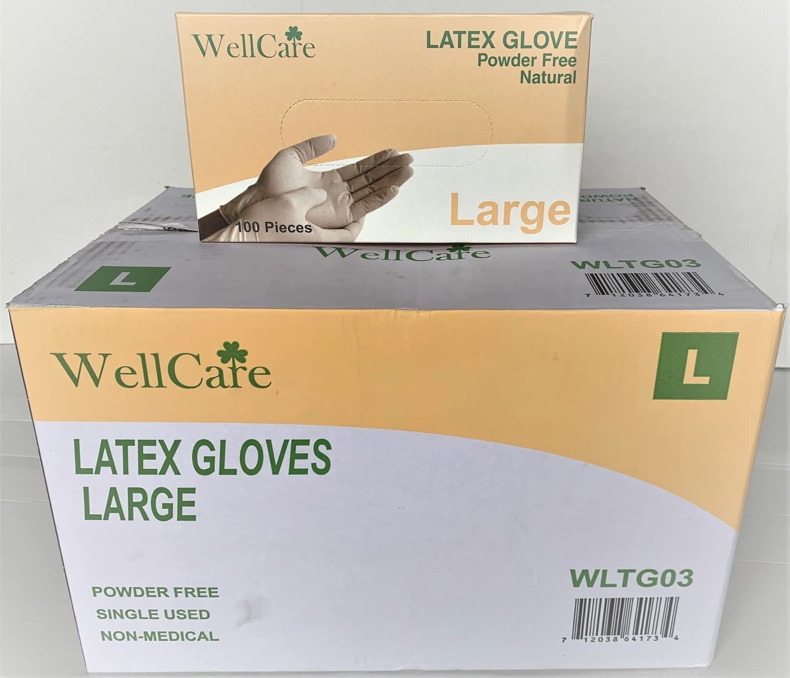 WellCare Natural Latex Powder-Free Disposable Gloves - Case of 1000 (Large)
